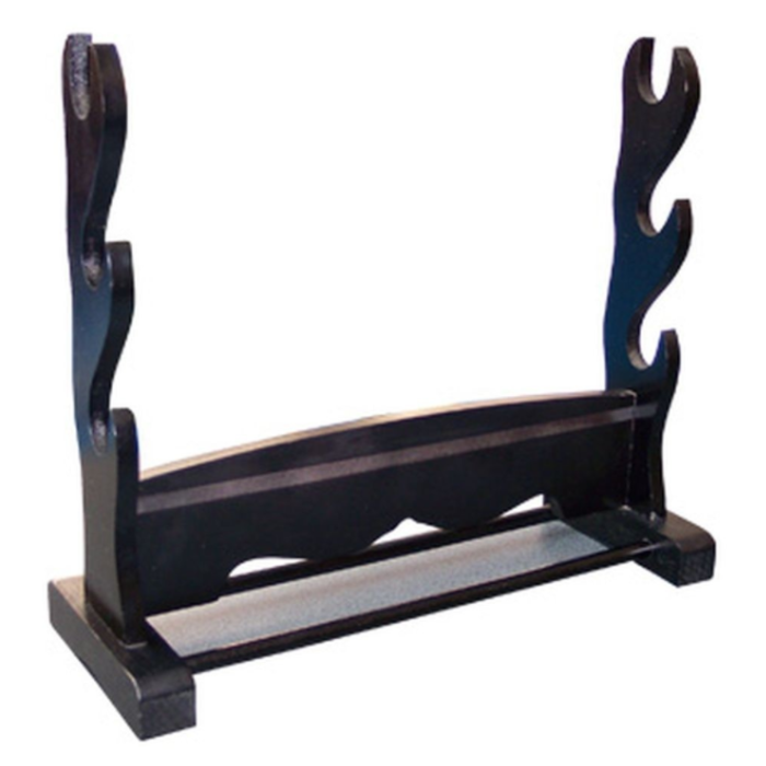 Supporto in legno per l’esposizione di tre spade. Ideale per conservare e presentare katana, bokken o altre armi tradizionali in modo elegante e sicuro.