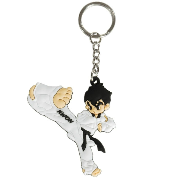 Elegante portachiavi dedicato agli appassionati di Taekwondo di tutte le età. Realizzato in morbida plastica, rappresenta perfettamente la passione per questa disciplina.