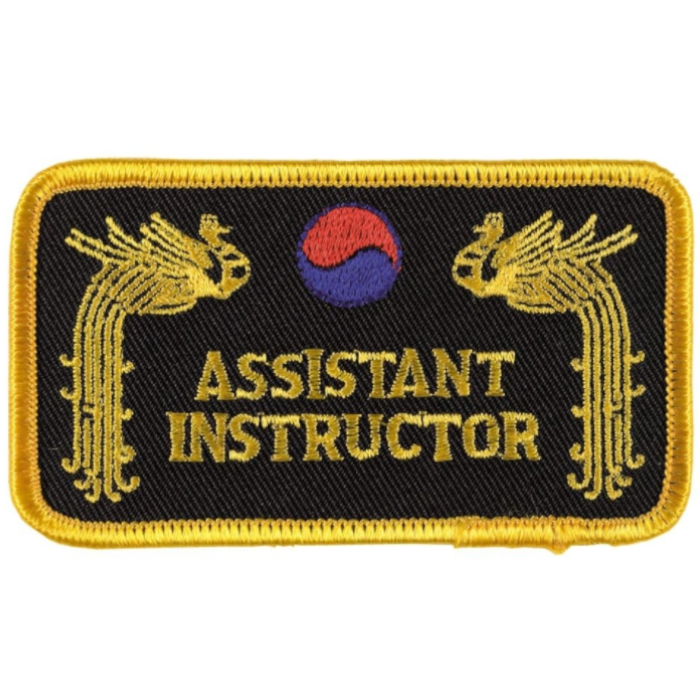 Patch ricamata con la qualifica Assistente Istruttore, ideale per divise e giacche da allenamento. Perfetta per riconoscere il ruolo all'interno della palestra o della scuola di arti marziali.