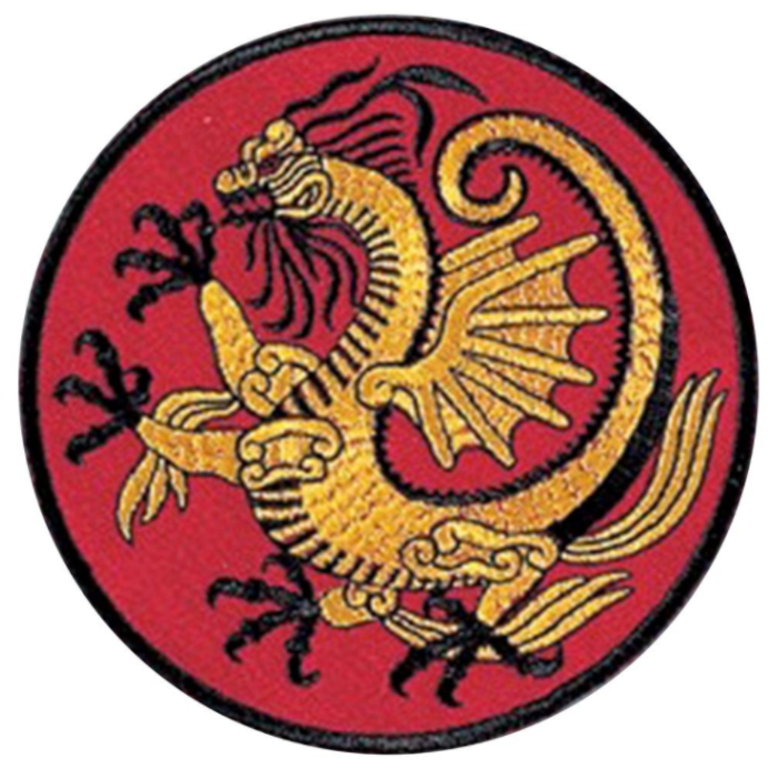 Patch ricamata rossa con dragone dorato, simbolo di forza e saggezza nelle arti marziali. Perfetta per decorare divise, giacche, borse o zaini, aggiungendo un tocco distintivo e tradizionale.