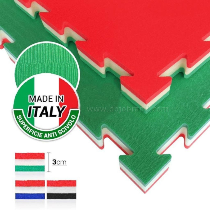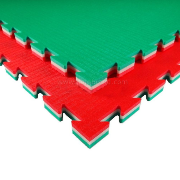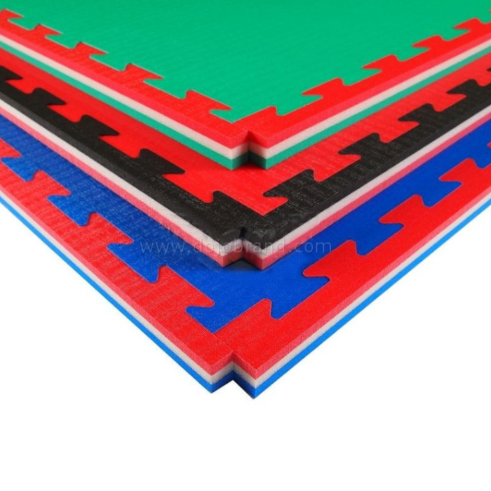 Tatami professionale in polietilene espanso reticolato a cellula chiusa, progettato per garantire un elevato assorbimento degli urti. La combinazione di densità diverse offre il perfetto equilibrio tra elasticità e resistenza agli impatti. Il taglio a getto d’acqua assicura precisione e un incastro reversibile, rendendo il prodotto pratico e versatile. La superficie presenta una finitura antiscivolo effetto paglia di riso per un grip ottimale.