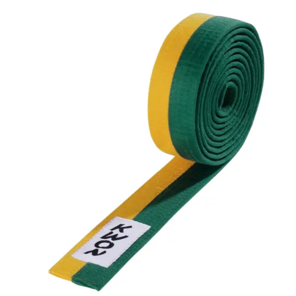 Cintura bicolore in puro cotone, ideale per il passaggio di grado nelle arti marziali come Taekwondo, Karate e discipline affini. Realizzata con 9 cuciture resistenti e rifiniture precise, offre durata, flessibilità e un look tradizionale.