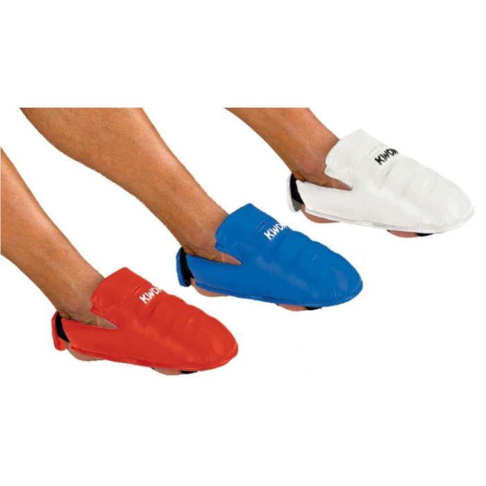 Parapiedi progettati per il Karate, realizzati con un guscio in vinile e inserti in schiuma per garantire massima ammortizzazione e comfort. Grazie al sistema di fissaggio a strappo, possono essere facilmente collegati ai paratibie da Karate per una protezione completa. Prodotto seguendo i regolamenti WKF (non omologato).