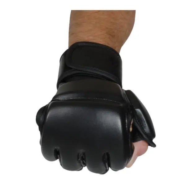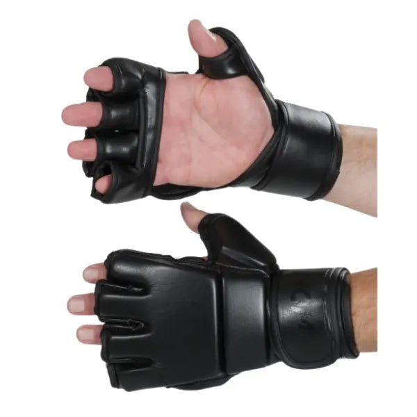 Guanti da MMA neri ideali per allenamenti leggeri, tecniche a contatto controllato e preparazione fisica. Realizzati in pelle sintetica resistente, garantiscono una buona durata nel tempo. L’imbottitura in schiuma extra morbida assicura comfort e protezione, mantenendo i guanti leggeri e ben bilanciati.