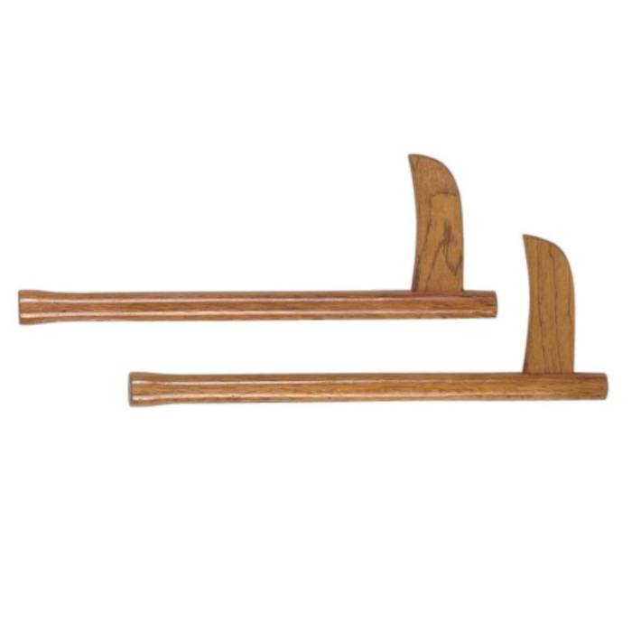 Heavy wooden Asian instrument similar to a sickle used in training Kobudo techniques of attack and defense.