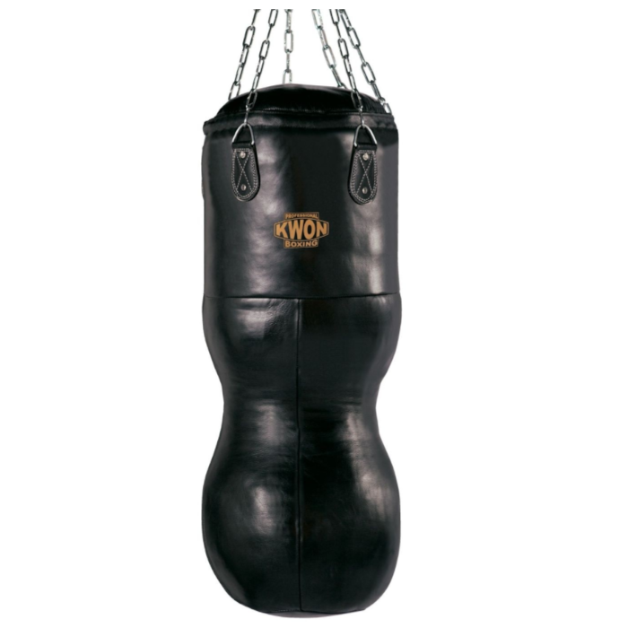 The black punching bag with golden KWON PROFESSIONAL BOXING print is made of 100% high quality buffalo leather.